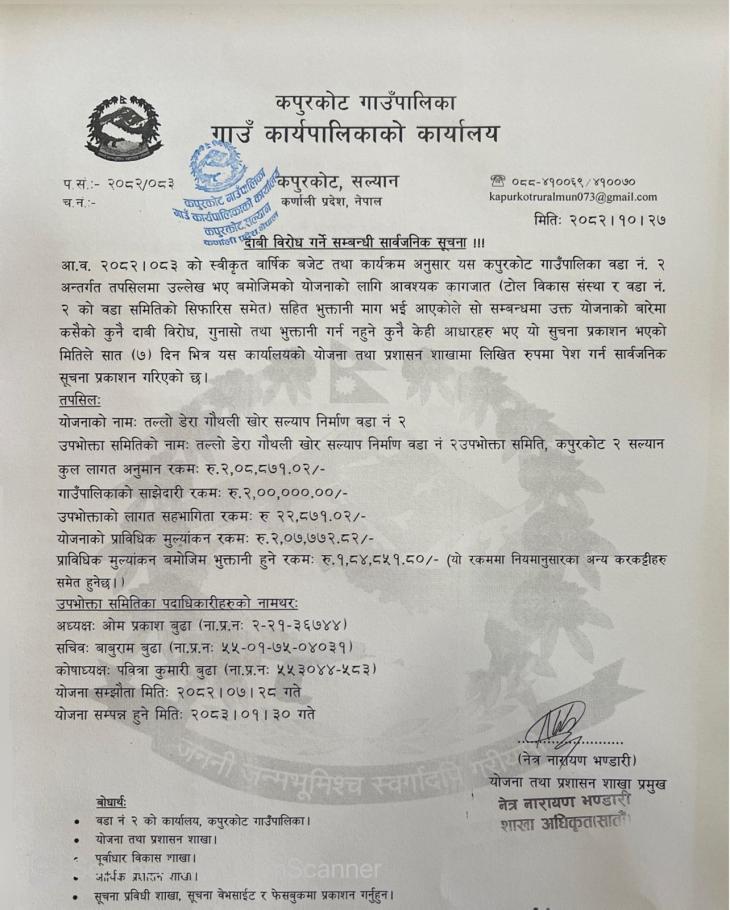 दावी विरोध गर्ने सम्बन्धी सार्वजनिक सूचना