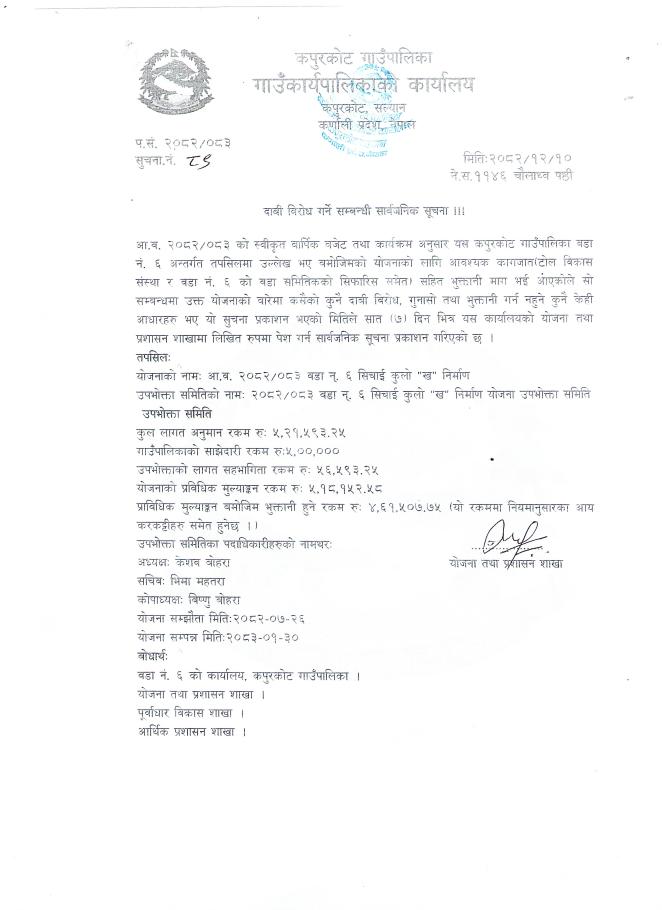 दावी विरोध सम्बन्धी सार्वजनिक सूचना।
