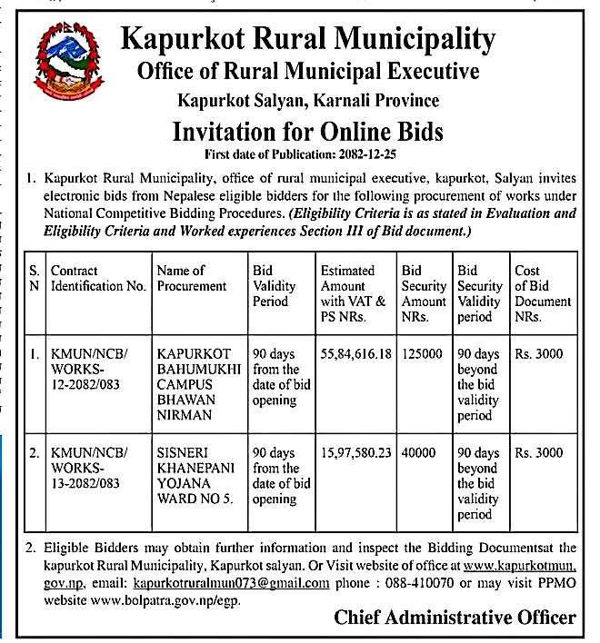बोलपत्र आह्वान सम्बन्धी सार्वजनिक सूचना।