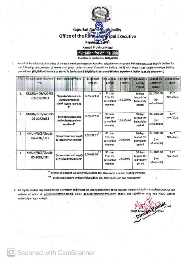 अनलाइन बोलपत्र आह्वान सम्बन्धी सूचना
