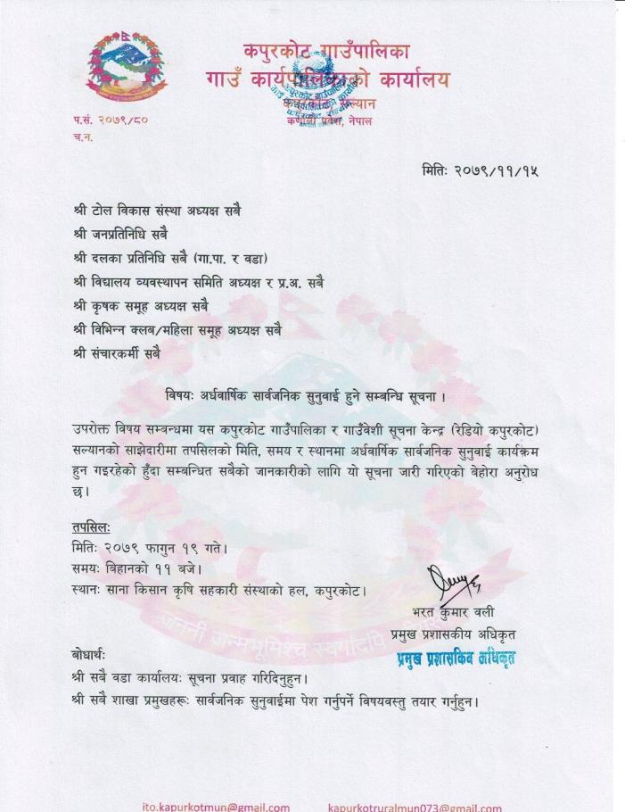 अर्धवार्षिक सार्बजनिक सुनुवाई हुने सम्बन्धि सूचना