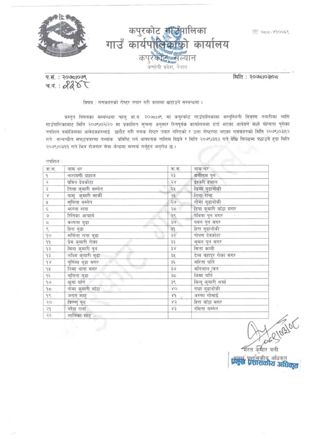 गणकहरुको राेस्टर प्रकाशन सम्बन्धी सूचना