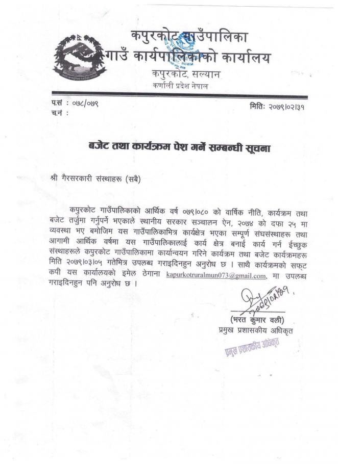 बजेट तथा कार्यक्रम पेश गर्ने सम्बन्धी सूचना