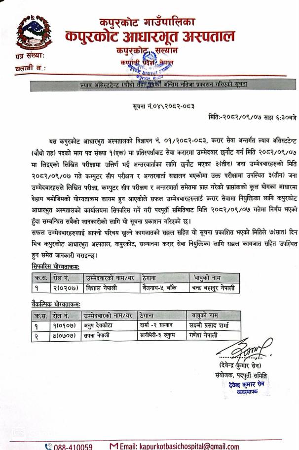 ल्याप असिस्टेन्ट (चौथो तह ) पदको अन्तिम नतिजा प्रकाशन गरिएको सम्बन्धी सूचना।