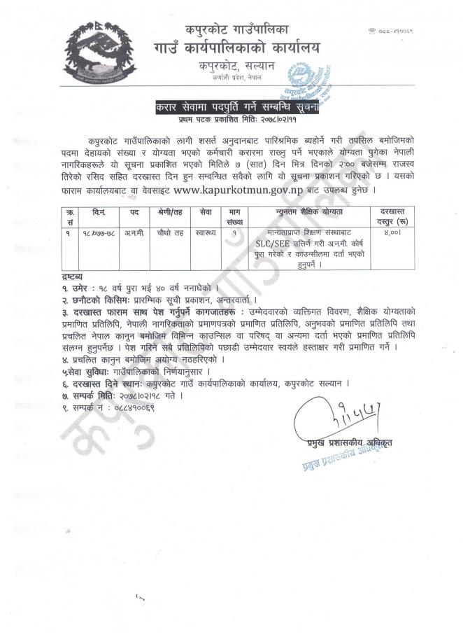 सेवा करारमा अ न मी भर्ना सम्बन्धी सुचना