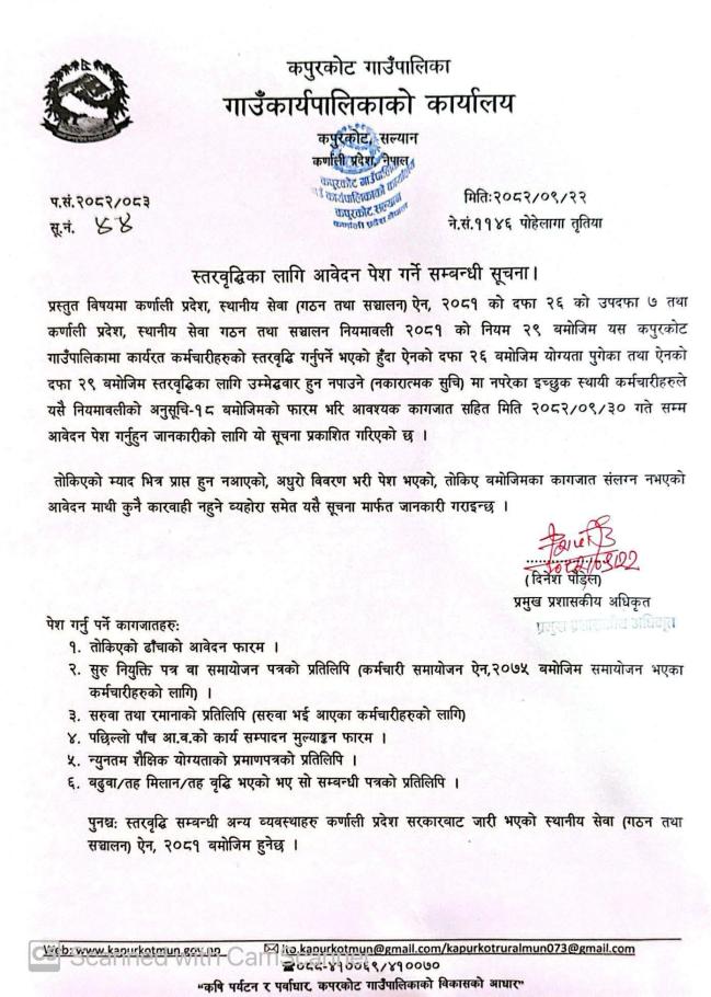 स्तरवृद्धीका लागि आवेदन पेश गर्ने सम्बन्धी सूचना।