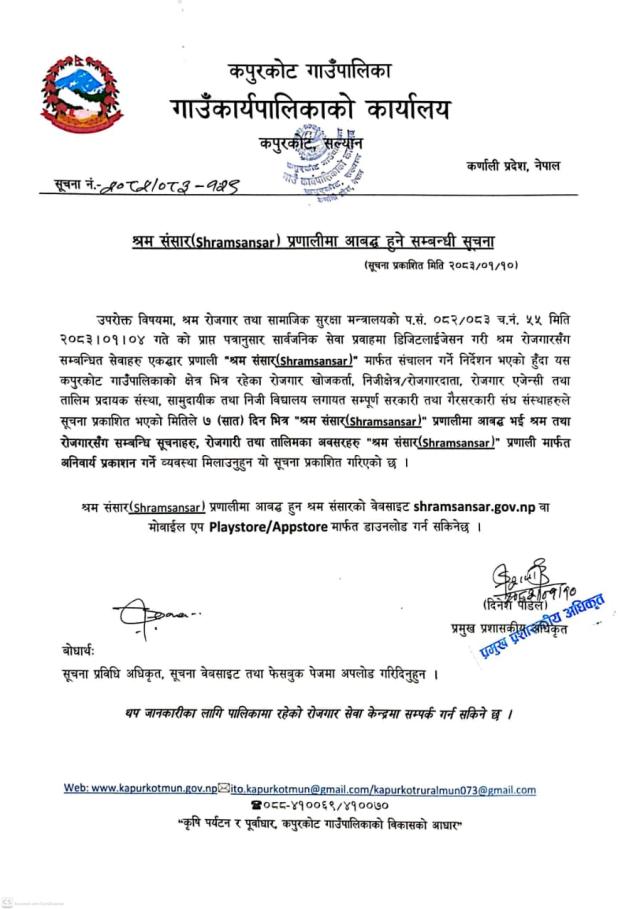 सरम संसार प्रणालीमा आवद्ध हुने सम्बन्धी सूचना।