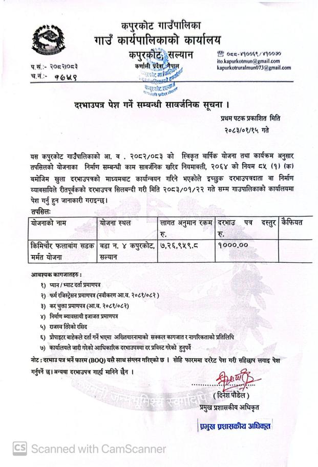 दरभाउ पेश गर्ने सम्बन्धी सार्वजनिक सूचना।